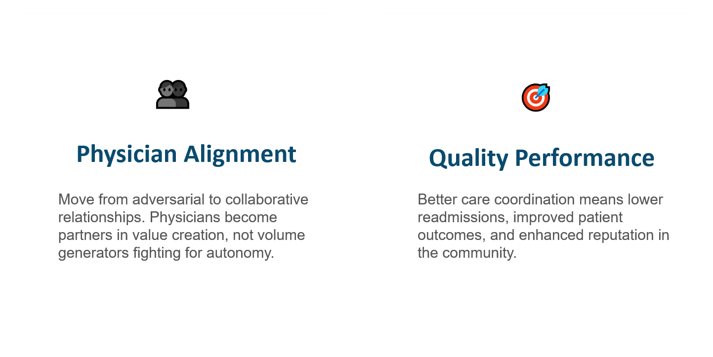 Healthcare is changing. Hospitals that adapt to value-based models while maintaining strong physician relationships will thrive.