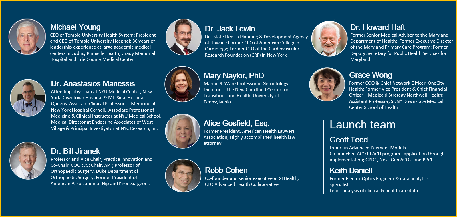 • Supported at launch by a team of experts in the fields of advanced payment models and healthcare data, analytics and business models.